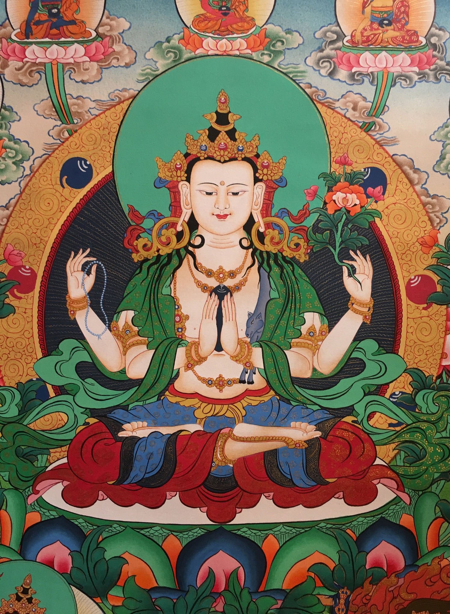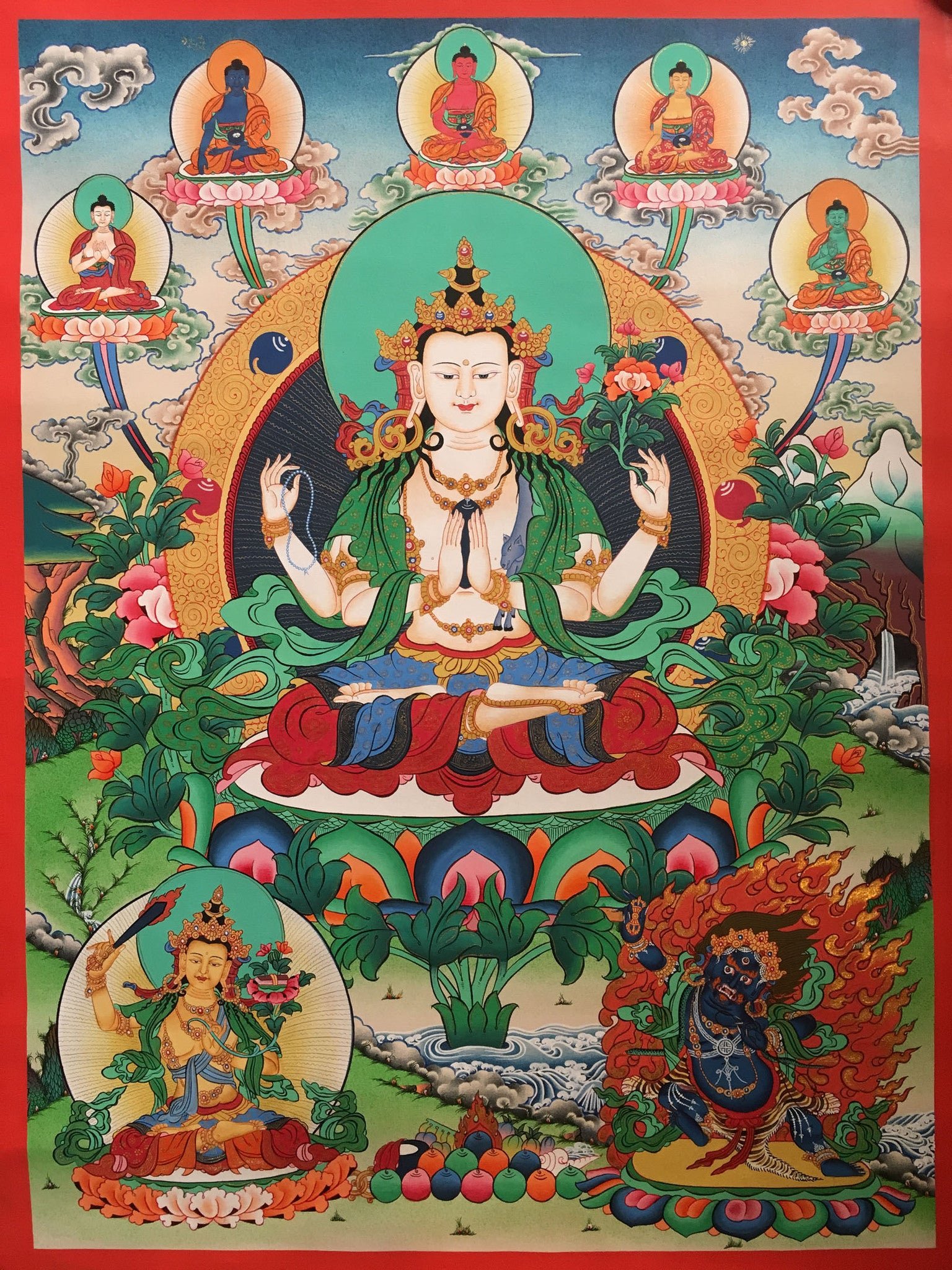 Chenrezig Thangka with Pancha Buddha 68x50cm