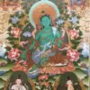 This is a beautifully Handpainted Green Tara Tibetan Thangka Painting which has come from the Birth Place of Buddha-Nepal. It has been painted on a cotton canvas. The intricate brush strokes, the beautiful color and the various aspects shown in this thangka makes it very powerful and blessed. The paint is natural and is extracted from Minerals and Vegetable Pigments.