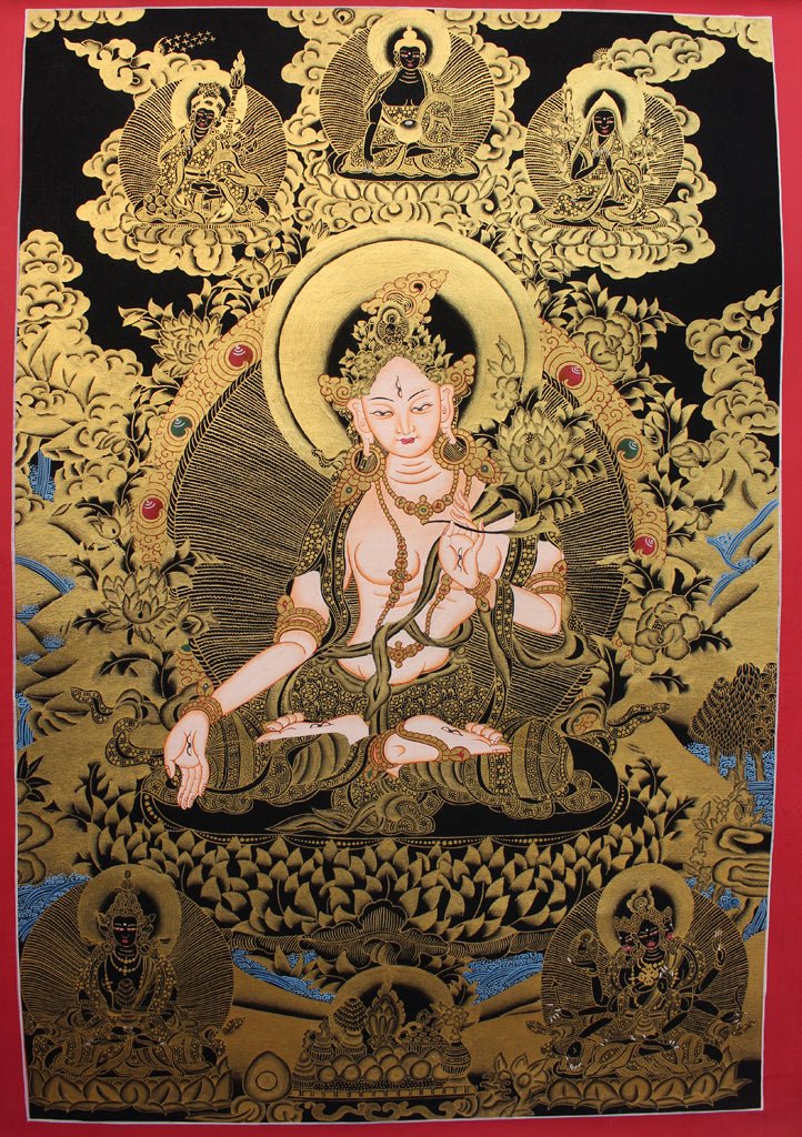 Be the first to review “White Tara Thangka with Red Border 59×41 CM”